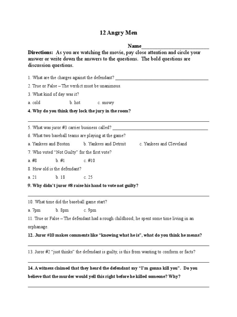 Guided reading questions plus an answer key. (more details for 12 angry men *). 12 angry men essay response essay 3 remember critical essay reading within 12 angry men worksheet. English 113 questions for the play twelve angry men the first three questions concern character. Worksheet will open in a new window.